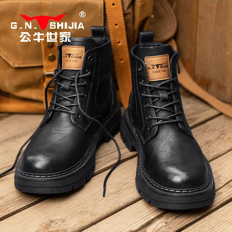 休闲工作劳保鞋 森马马丁靴男2025冬季 靴男士 加绒加厚高帮工装 新款
