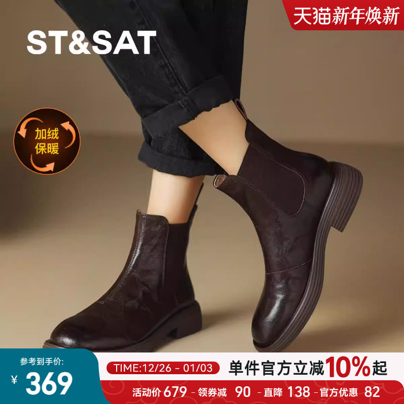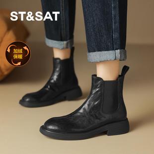 气质短靴子 千百度羊皮细高跟弹力靴袜靴女百搭冬季 静音系列