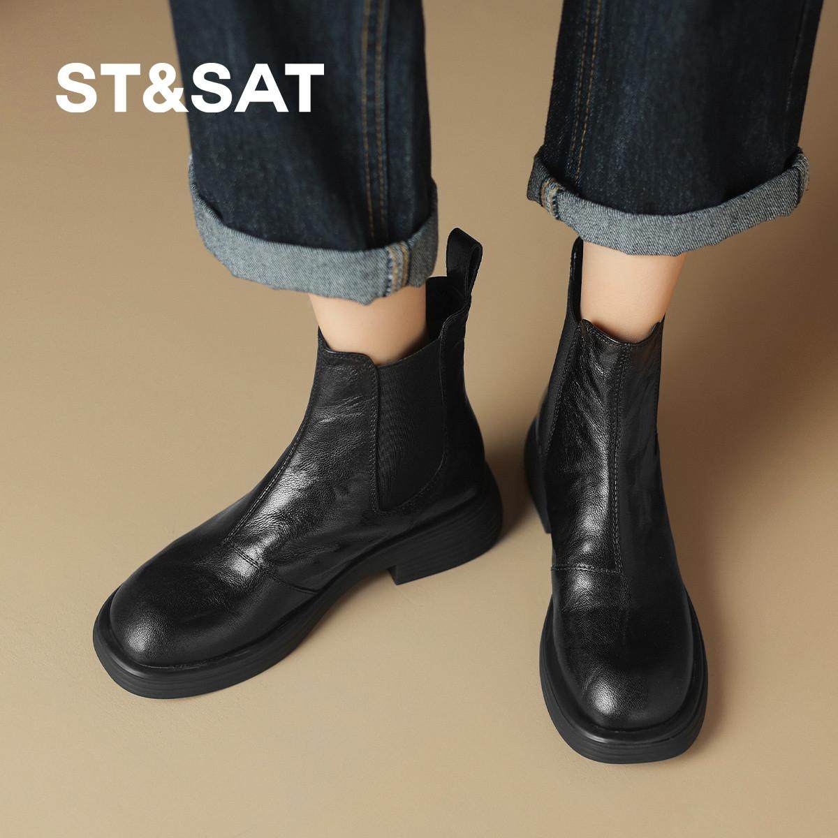 25冬新款 海豚岛 休闲瘦瘦靴弹力袜靴厚底短靴女 HARSON 哈森