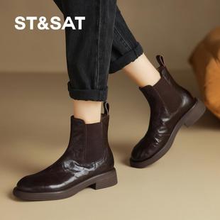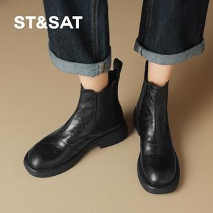 英伦复古方头马丁靴女短靴2025秋冬新款 韩国袜靴弹力靴软底瘦瘦靴