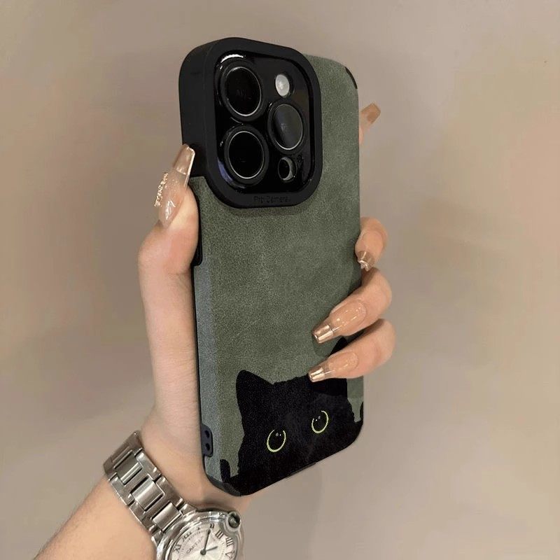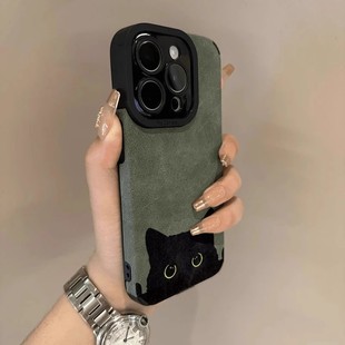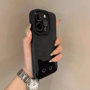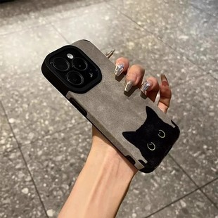 70卡通小众s30 19男女款 8防摔y200软保护套 皮纹小黑猫vivox200Pro手机壳新款 iqoo13全包neo9 创意x100