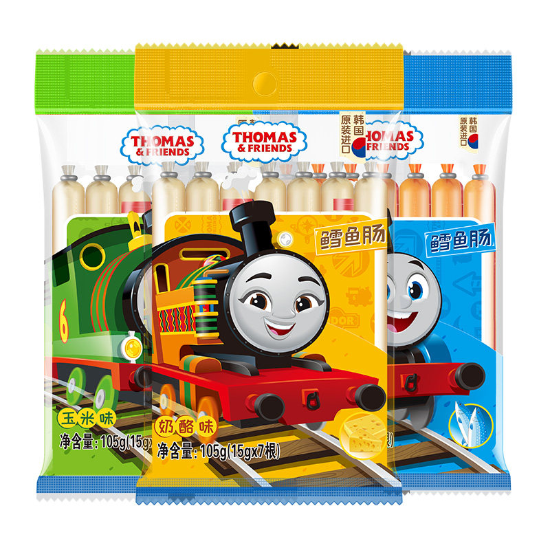 韩国进口托马斯鳕鱼肠宝宝零食鱼肉肠3袋3味儿童鱼肠即食火腿肠