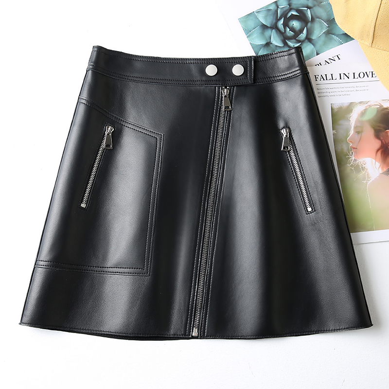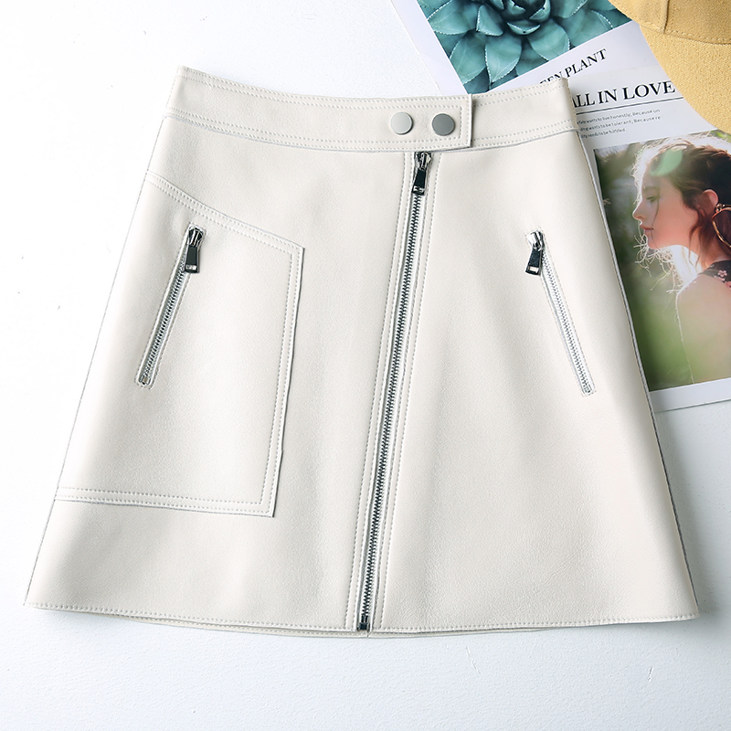 绵羊皮真皮皮裙女拉链高腰a字裙白色高街半身裙欧美短裙春秋新款