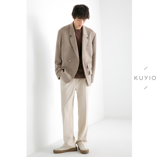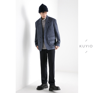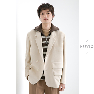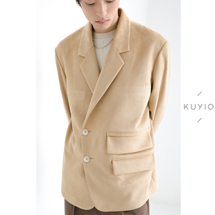 外套男 不对称斜门襟宽松挺廓休闲西装 J05 针织弹力麂皮绒 KUYIOU