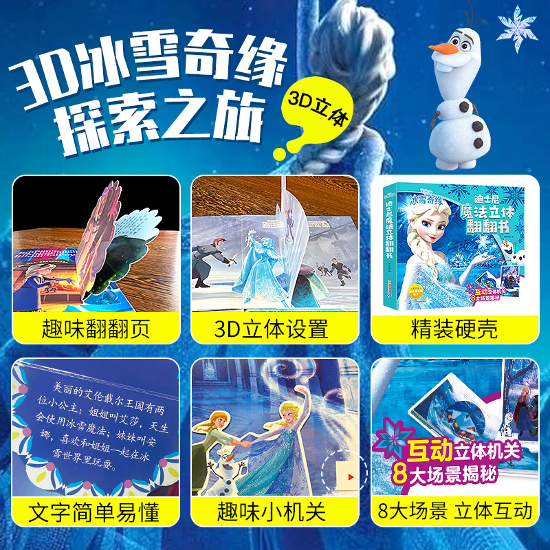 冰雪奇缘儿童3d立体书翻翻书机关女孩换装 玩具爱莎公主换装 8岁幼儿园艾莎公主绘本故事书校多多小蝌蚪点读笔 艾沙0 迪士尼正版