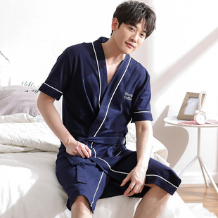 家居服 中青老年睡衣加大浴袍长款 春秋季 100%纯棉睡袍男长袖