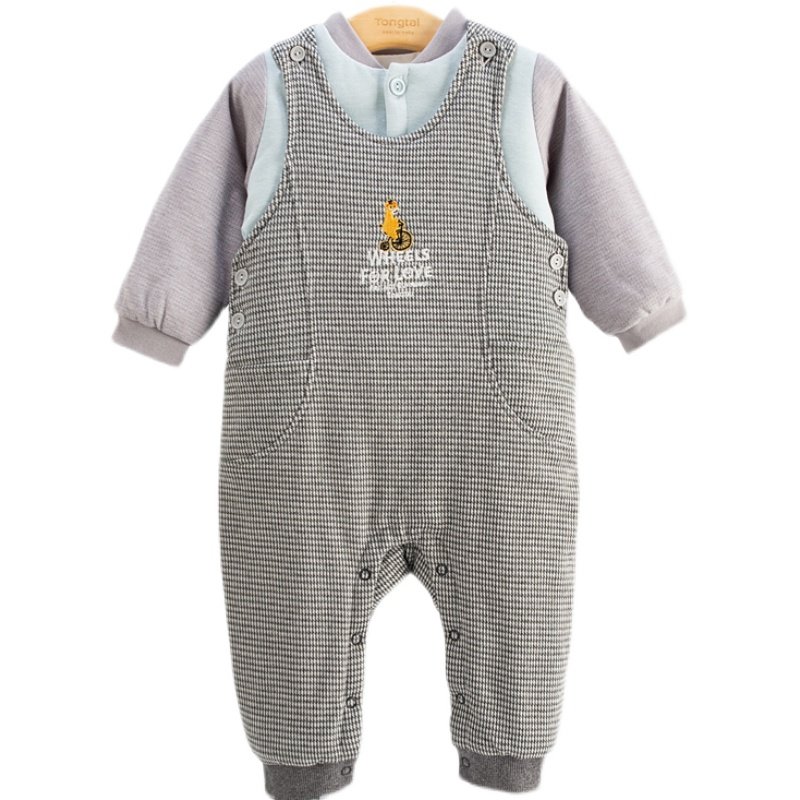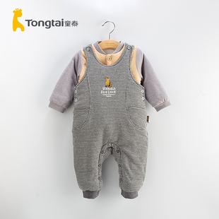 24个月男女宝宝夹棉背带裤 纯棉春秋5 薄棉 套装 童泰婴儿棉背带裤