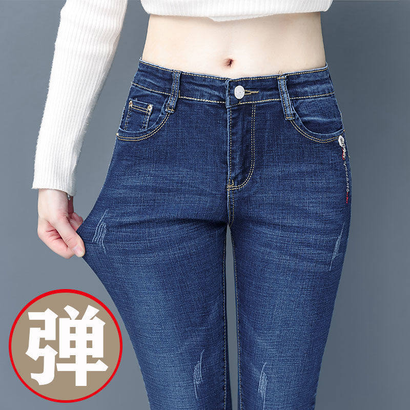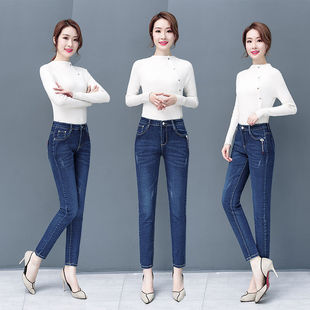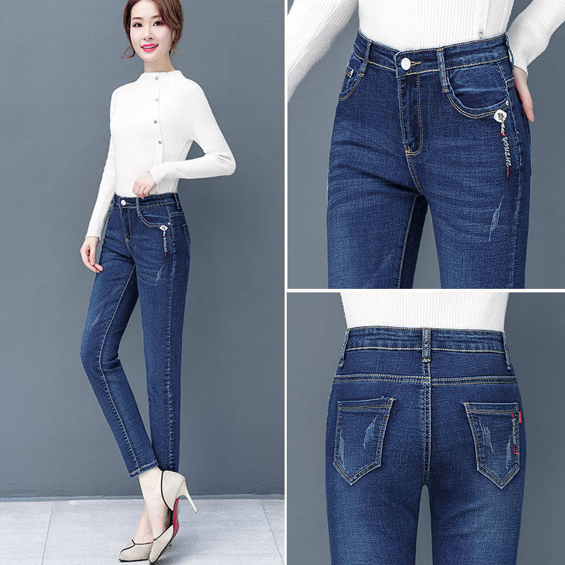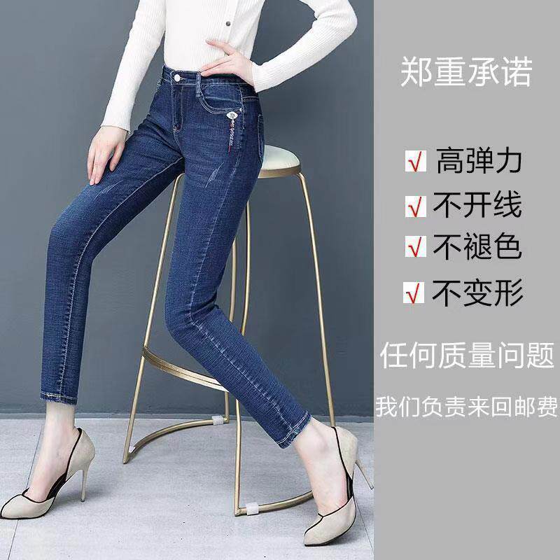 高腰高档弹力铅笔小脚裤 2025秋冬季 女新款 加绒加厚牛仔裤 显瘦单裤