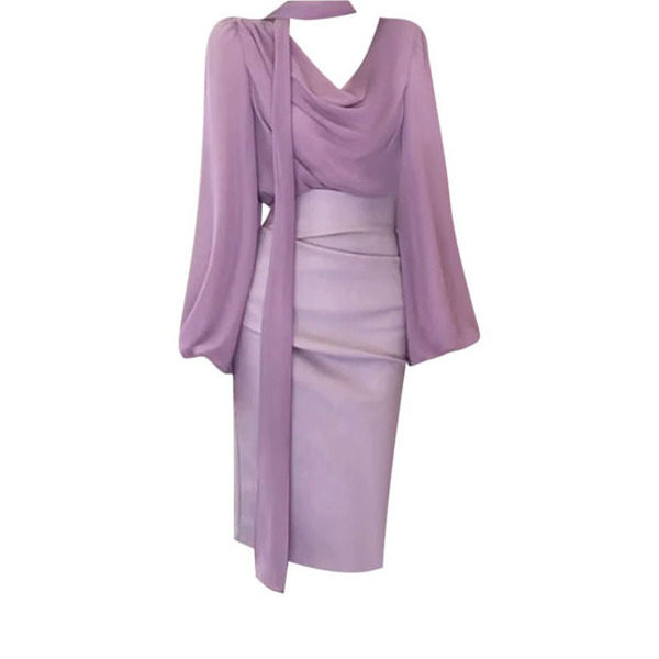 胖MM法式 紫色包臀裙两套装 气质纯欲风荡领飘带衬衫 新款 女夏季 大码