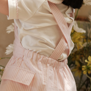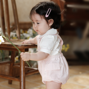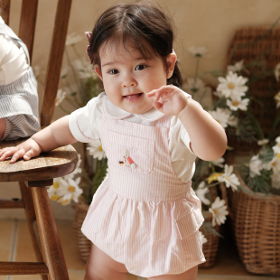 刺绣姐弟装 爬服女童背带裤 sailors英伦条纹粉色宝宝夏短袖 three