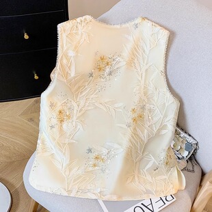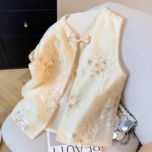 新中式 国风高级感气质坎肩背心重工刺绣钉珠盘扣上衣 马甲2026新款