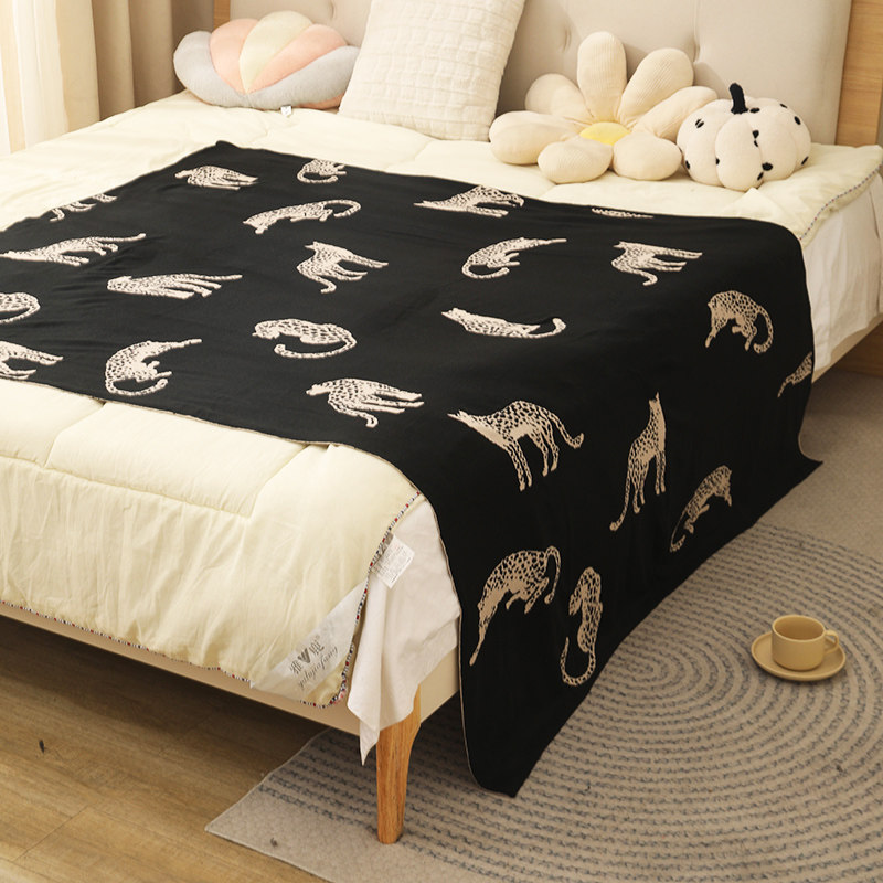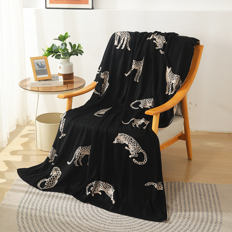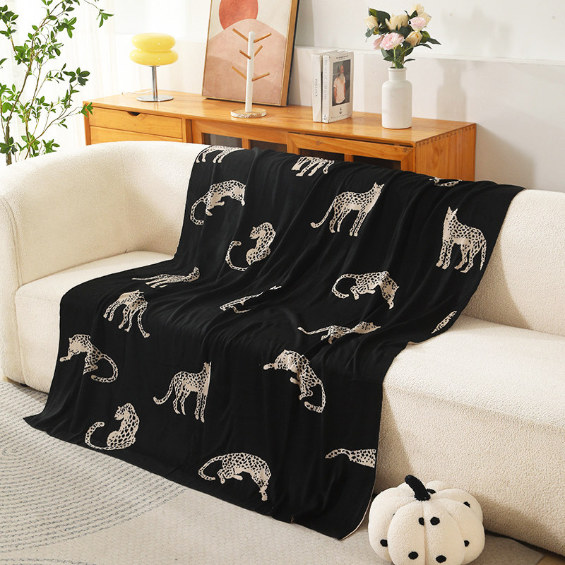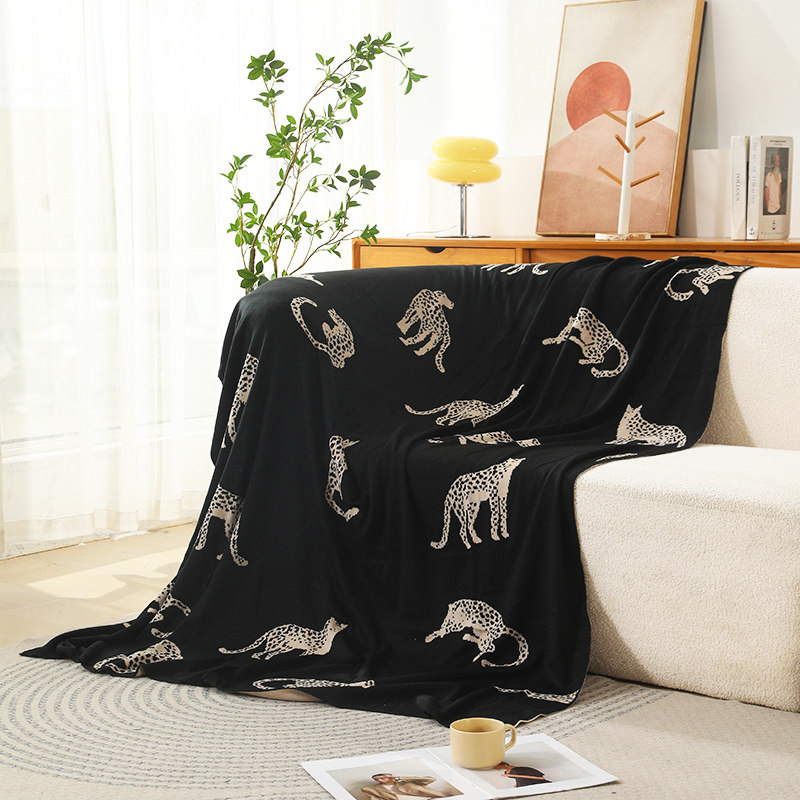 北欧风黑白豹沙发巾装 通用 饰毯休闲毯床尾巾台布空调盖毯搭巾四季