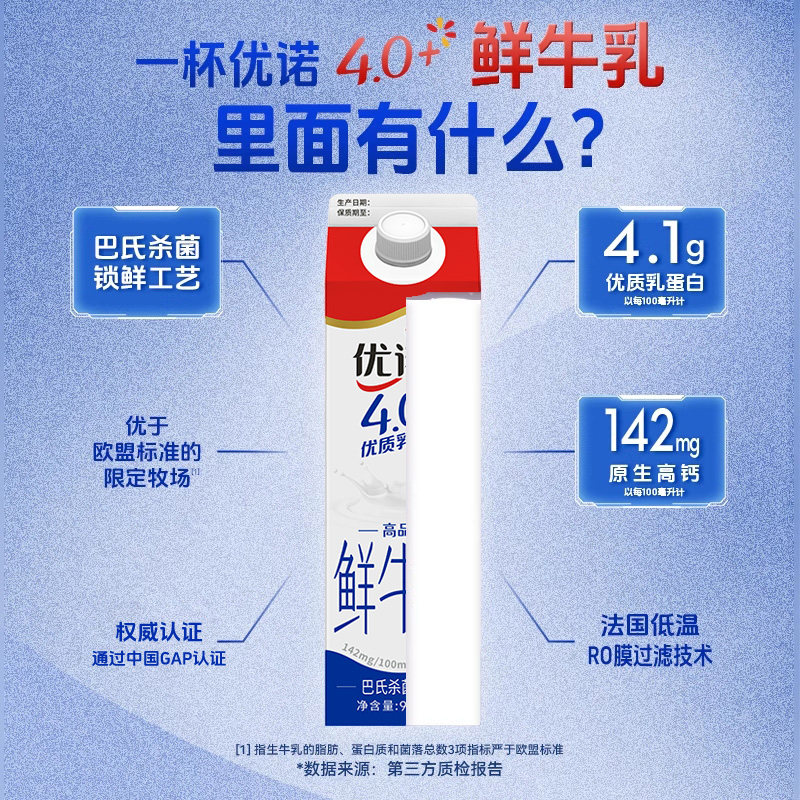 yoplait优诺低温鲜牛奶4.0 3盒 优质乳蛋白生高钙鲜牛奶950ml