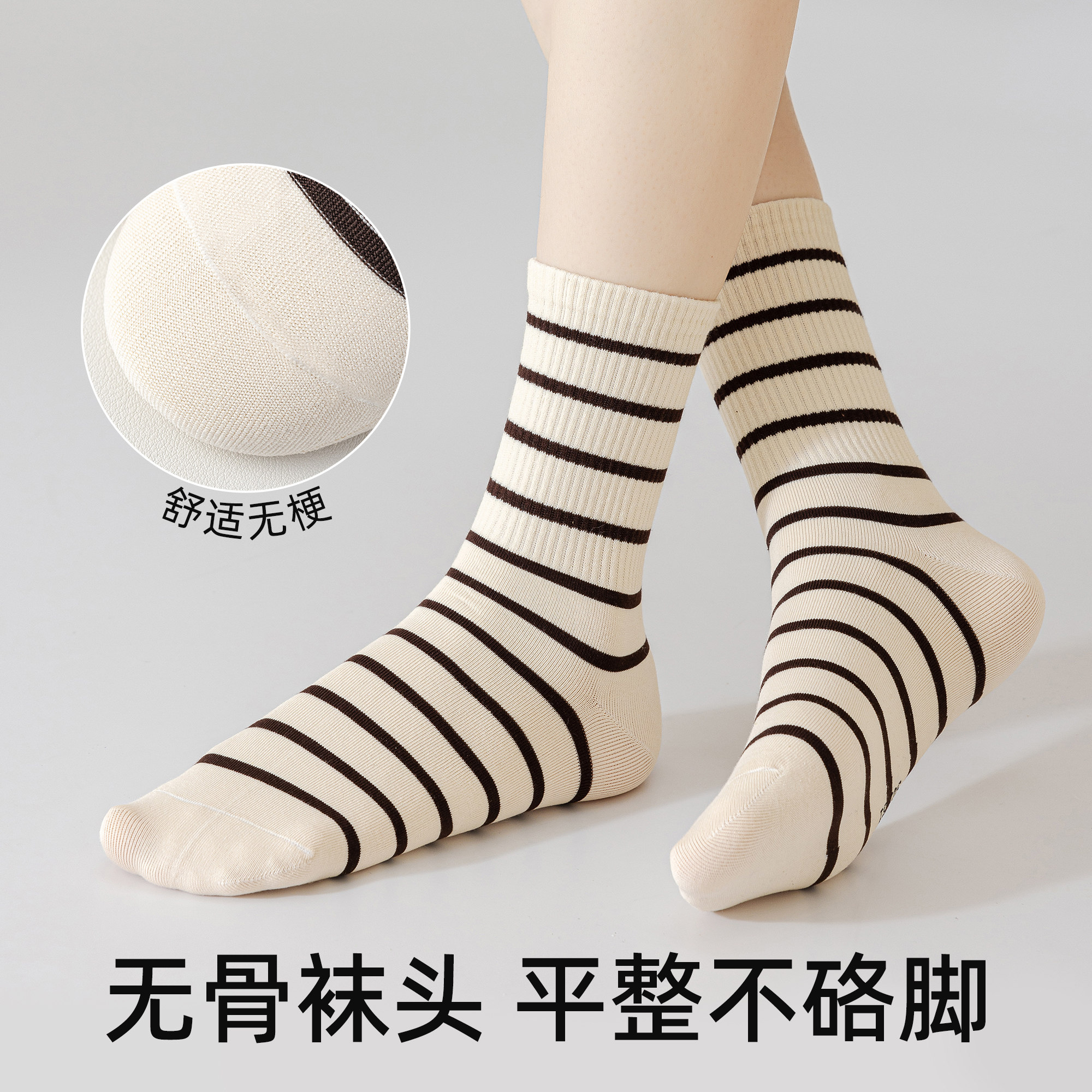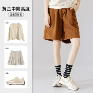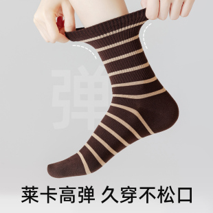 ins中筒袜 爆款 美拉德条纹袜子女夏薄款 高质量纯棉袜子女2026新款