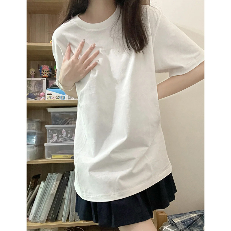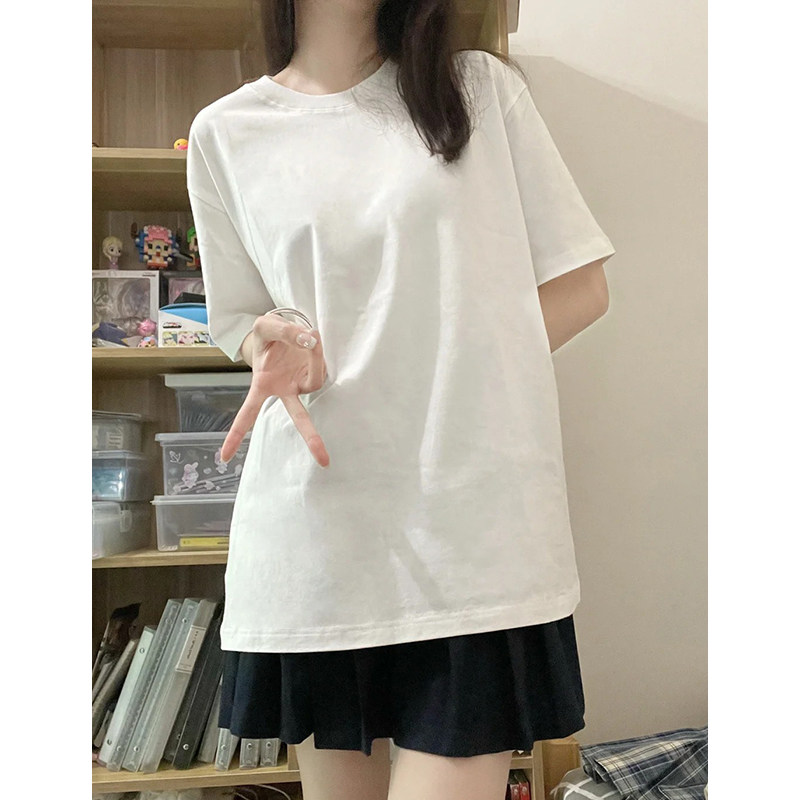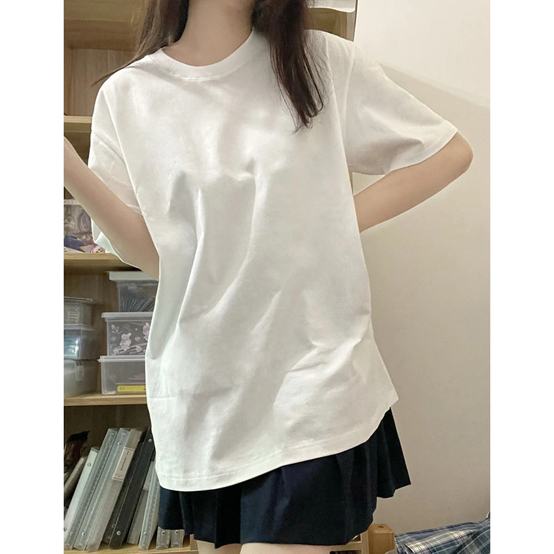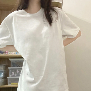 宽松圆领叠穿学生穿搭上衣潮 春季 白色纯棉重磅短袖 t恤女2025新款