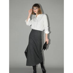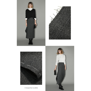 COCOBELLA格雷系手工贡针设计感不规则毛边裙摆半身裙HS7020