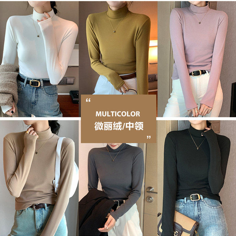 双面德绒半高领打底衫 上衣 女内搭自发热春秋薄绒T恤保暖秋冬长袖