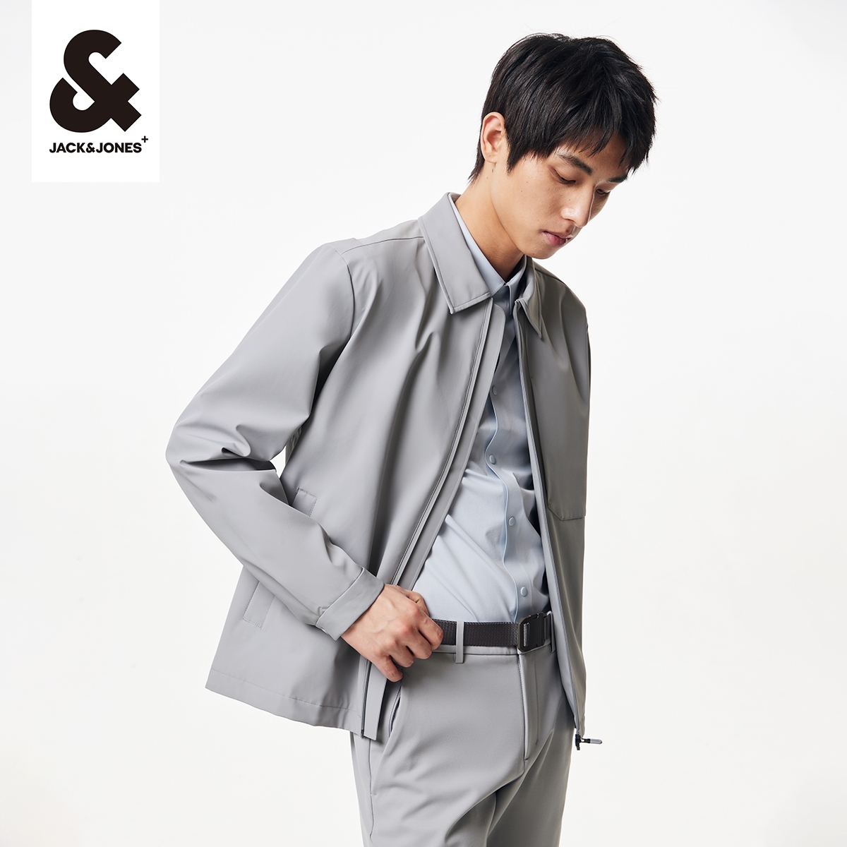 tq区绫致杰克琼斯春夏直筒翻领拉链插袋长袖 防泼水外套