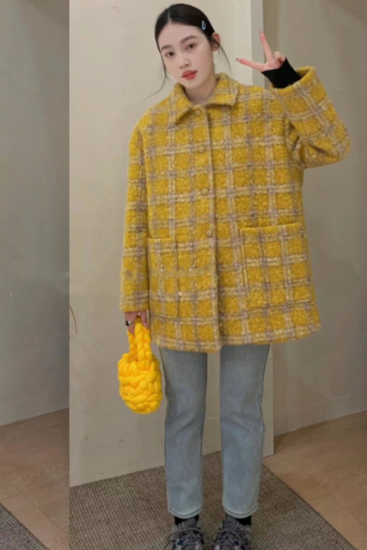PINKMOON 韩系简约百搭夹棉外套 三色羊毛冬日毛呢大衣