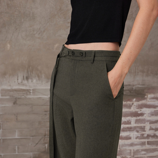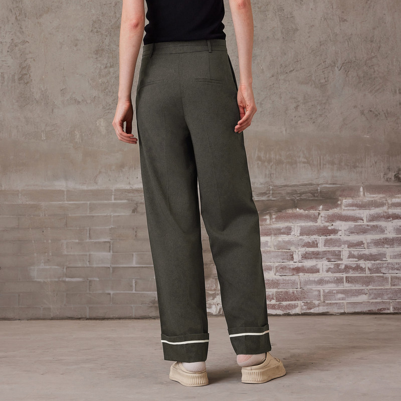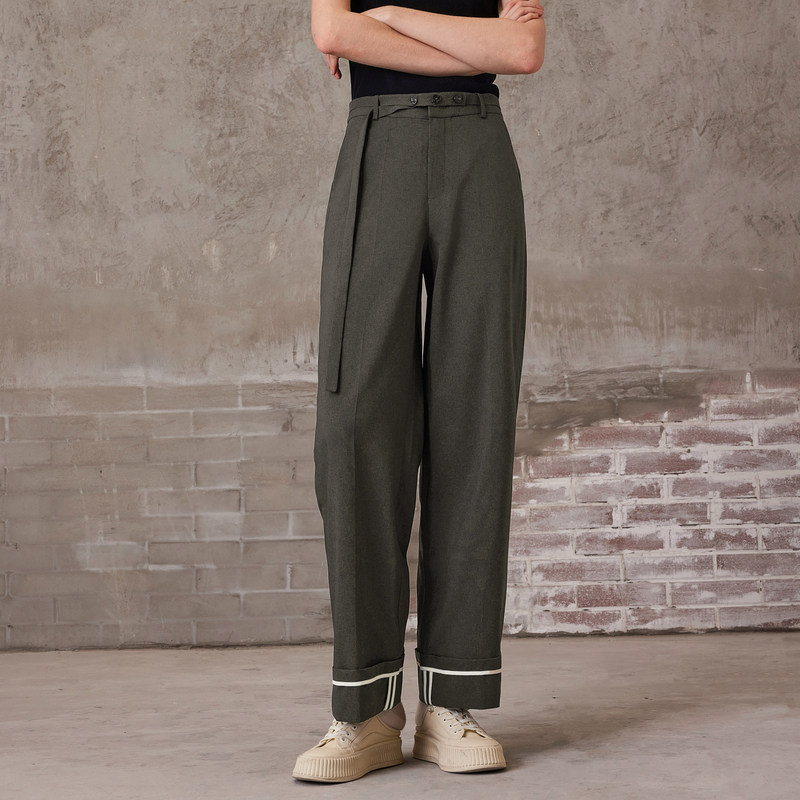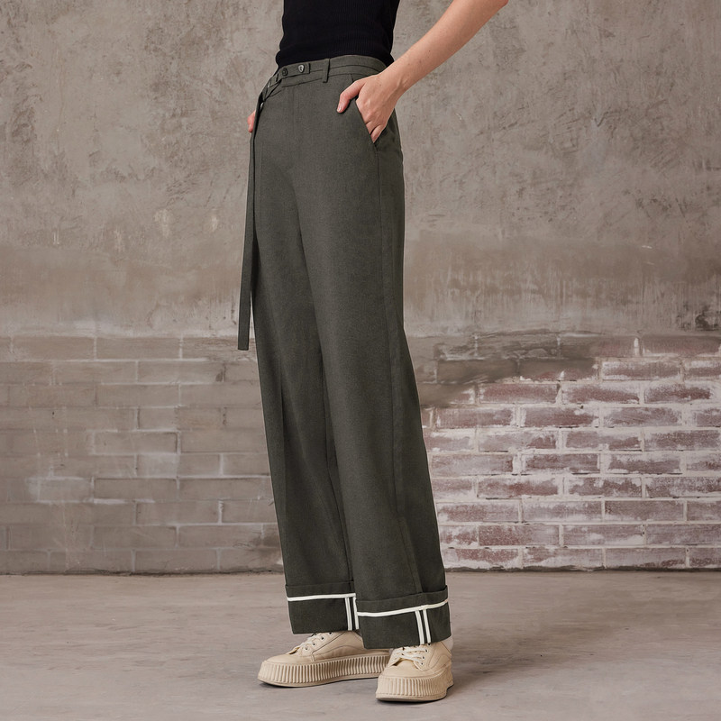 MFAN6801 撞色显瘦直筒裤 MSLAN复古麻感西装 裤