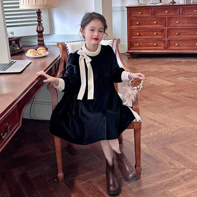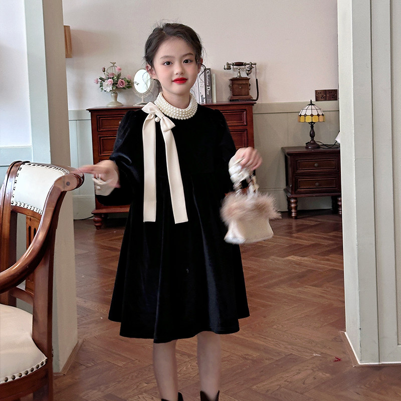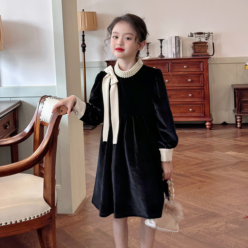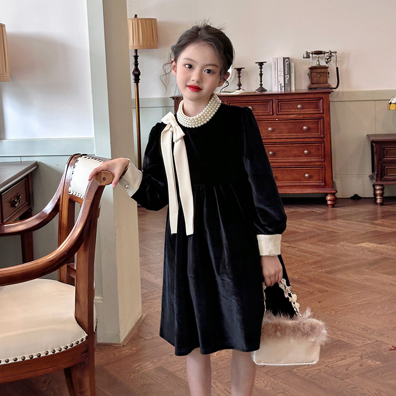 XINYI 秋冬珠帘拼接丝绒连衣裙女收腰显瘦X625Q20168 Lady小姐