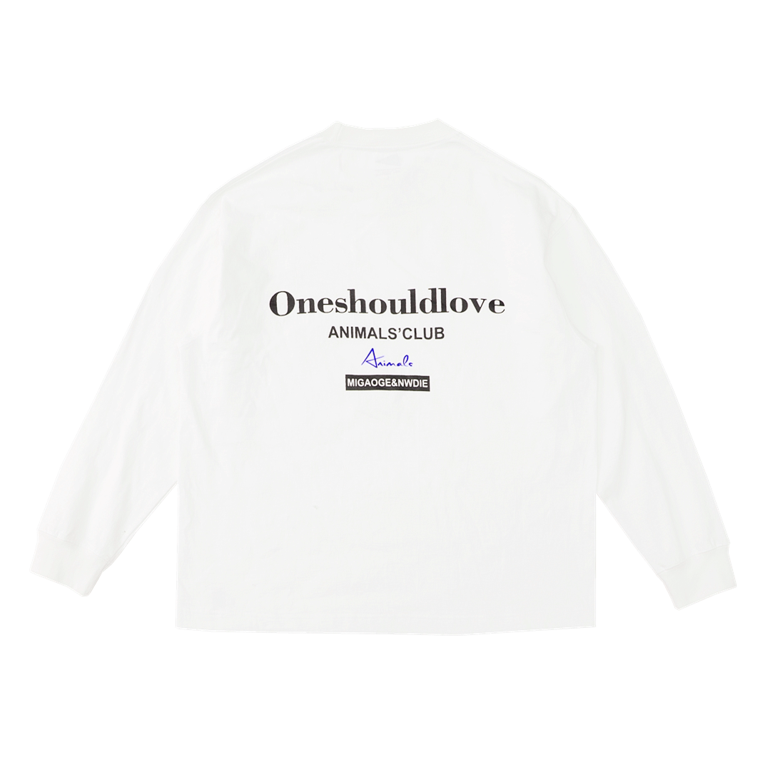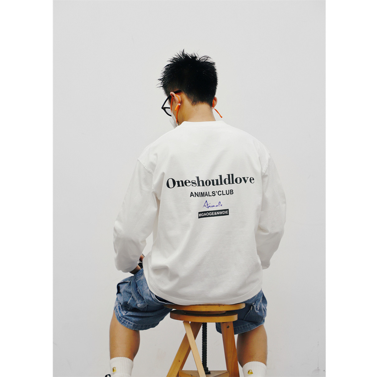T恤 圆领国潮潮牌情侣长袖 美式 简约字母印花男女重磅棉宽松落肩袖