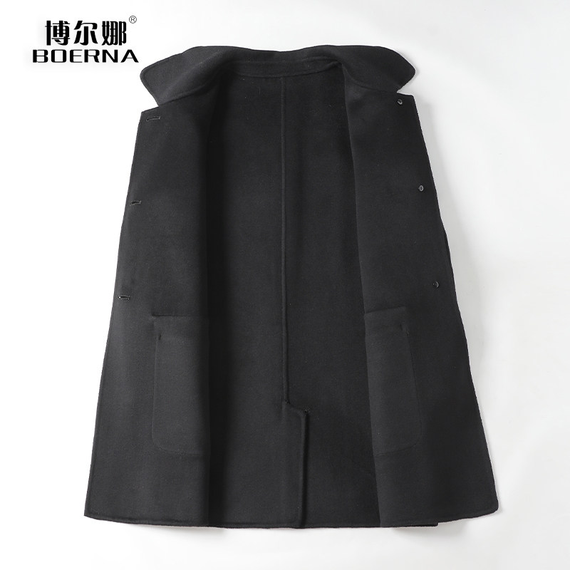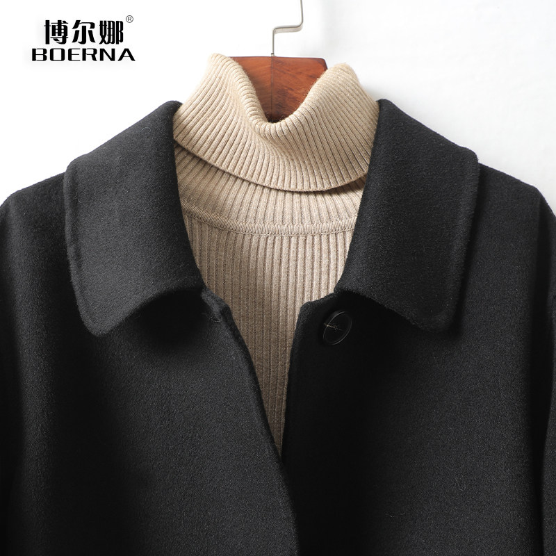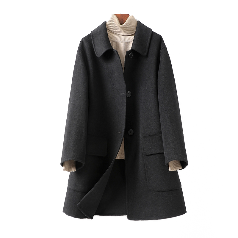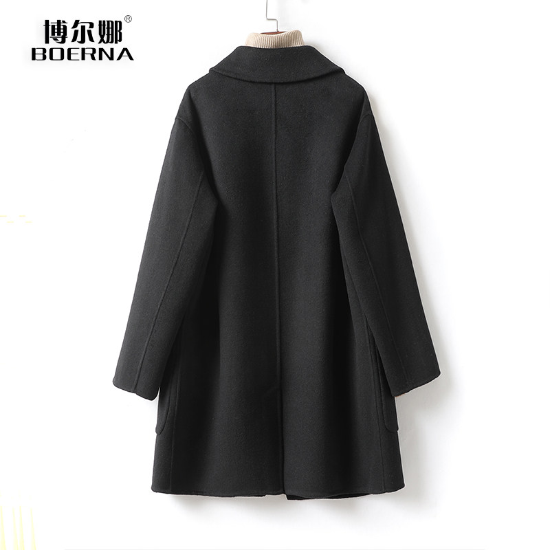 双面羊毛大衣女中长黑色翻领韩版 高端羊毛呢外套 宽松2026春秋新款