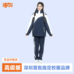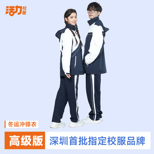 活力深圳校服中学生冲锋衣初中三合一特氟龙面料外套含摇粒绒内胆