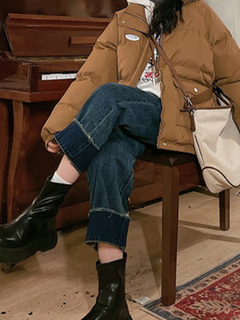 安妮不火 假两件收腰长裙 学院风缎面娃娃领呢料连衣裙女微胖大码