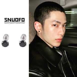 黑白五角星耳钉女小众设计百搭锆石耳骨钉复古叠戴高级感耳环耳饰
