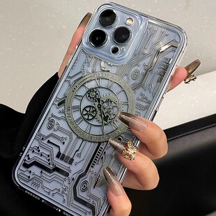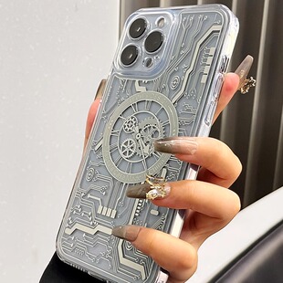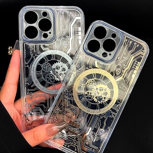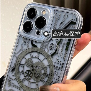 适用苹果14promax磁吸15pro手机壳magsafe新款 iPhone13无线充透明ip机械表iphone16pro镭射apple17e硅胶p防摔