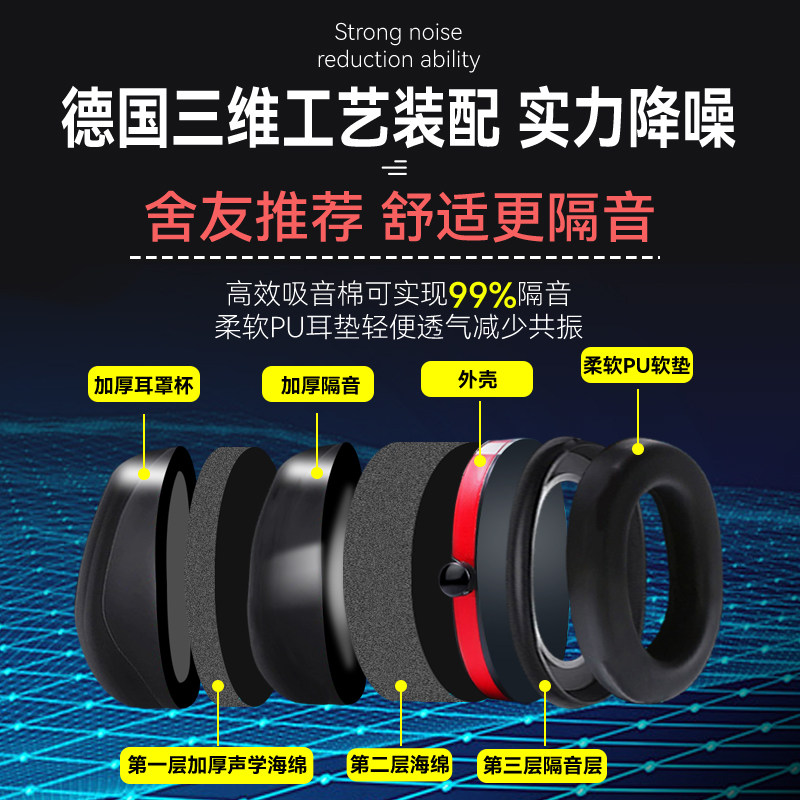 隔音耳罩降噪耳机睡觉神器工业级超强防噪音睡眠静音头戴式 耳塞噪