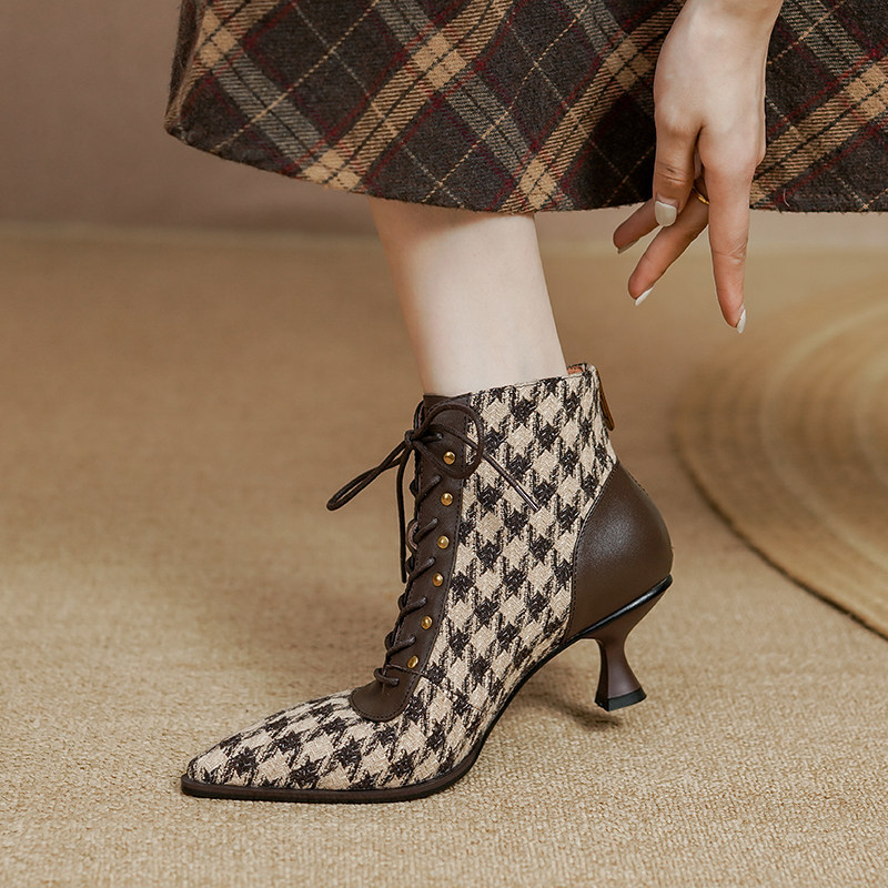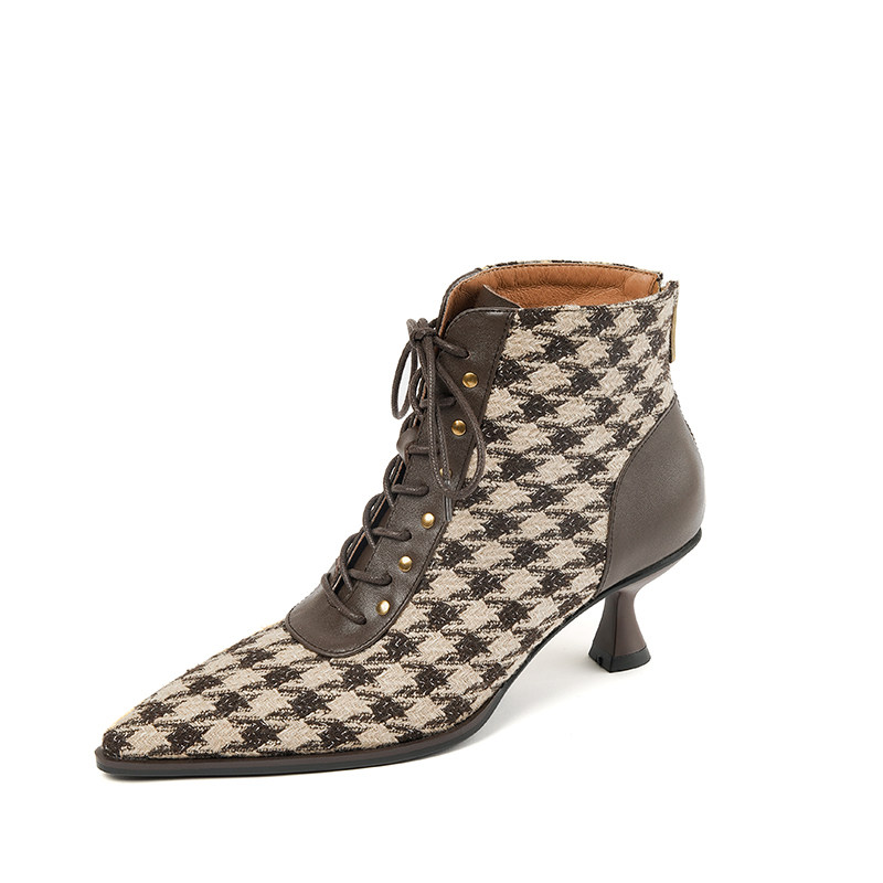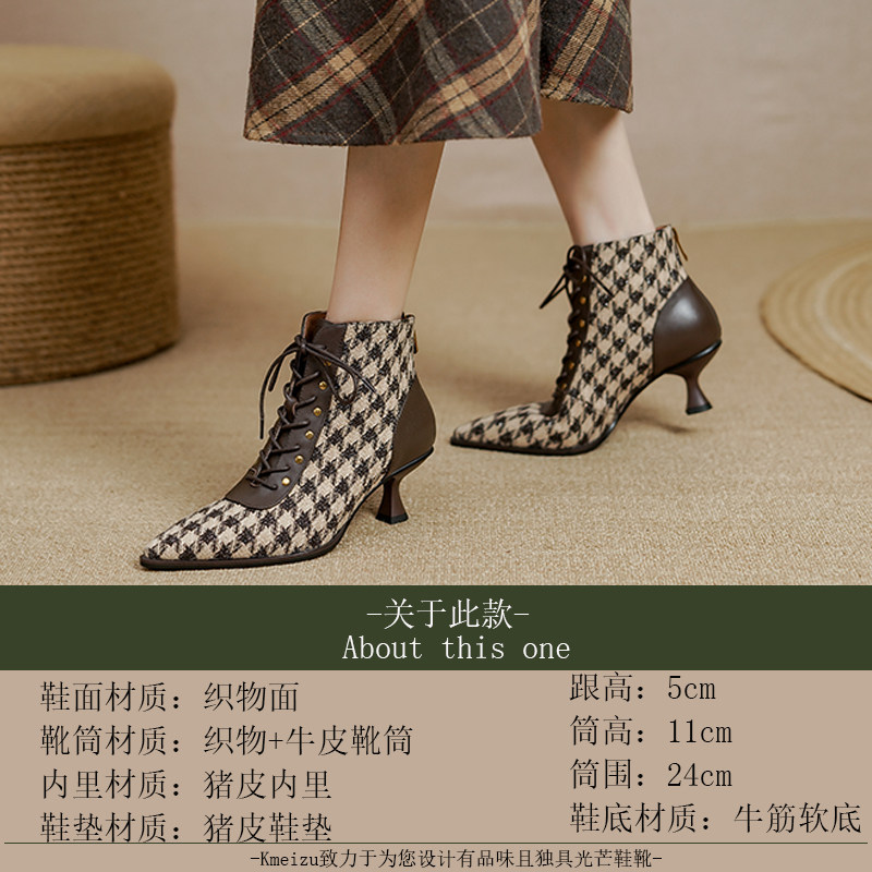 靴F3051DD5 通勤方头复古短靴粗跟女时装 百思图2025冬季 商场新款
