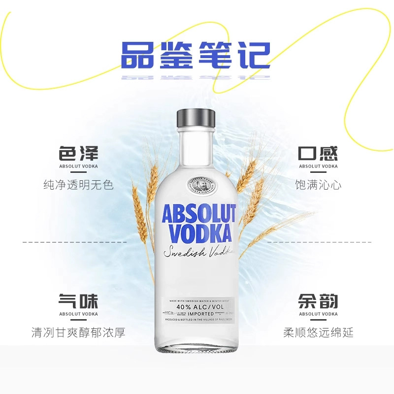 ABSOLUT绝对伏特加酒经典 进口洋酒vodka官旗正 原味500ml瑞典原装