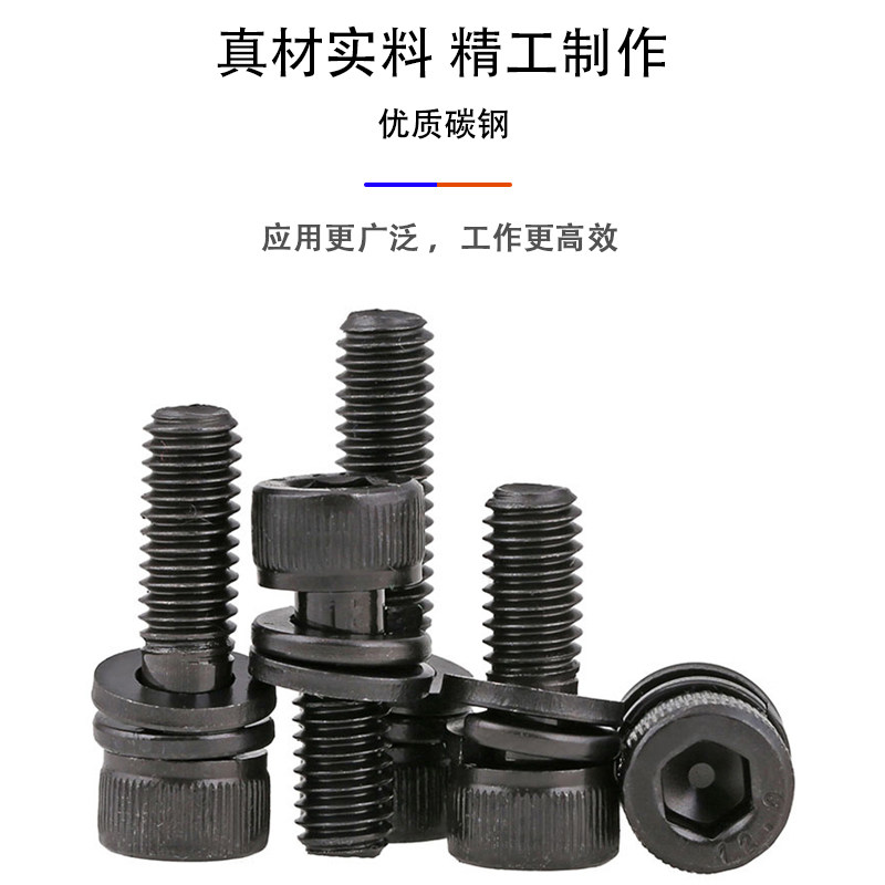 12.9级黑色杯头内六角三组合螺丝钉M2M2.5M3M4M5M6M8M10M12 14x18