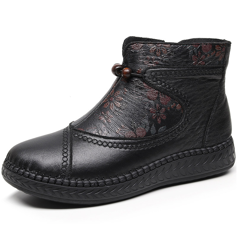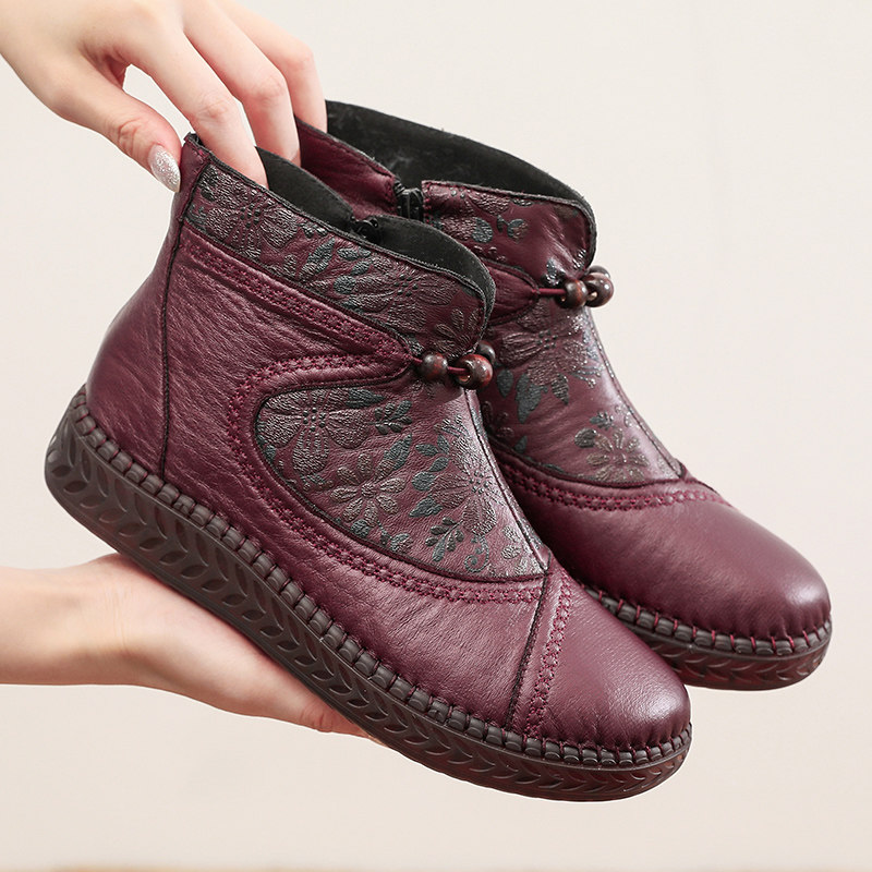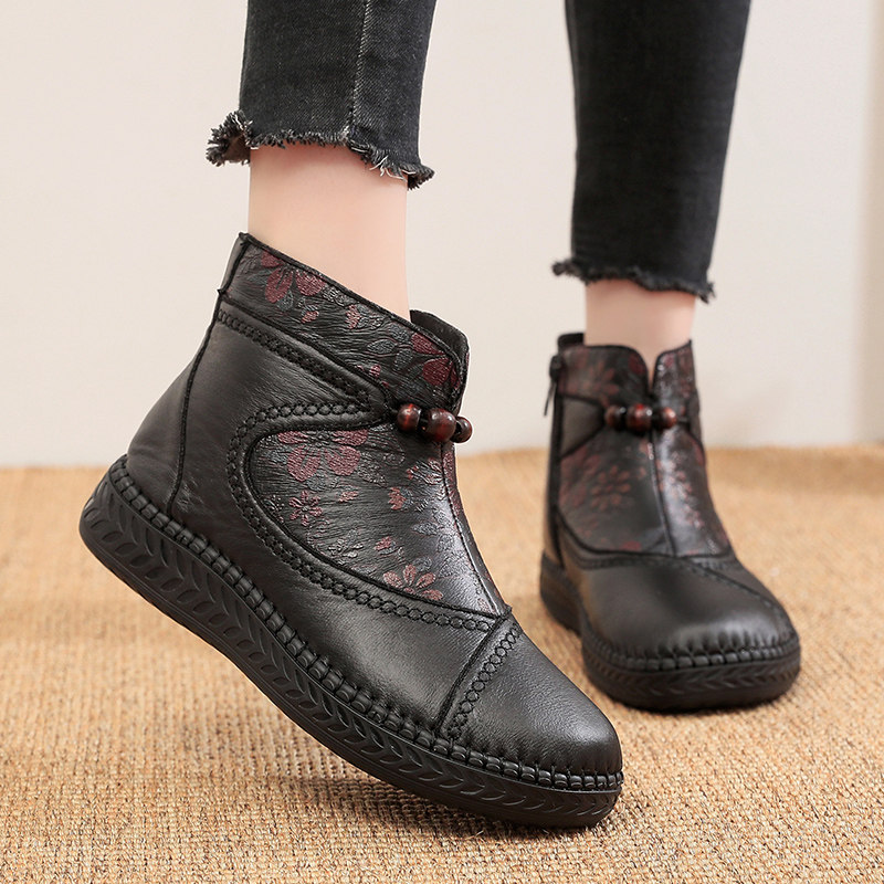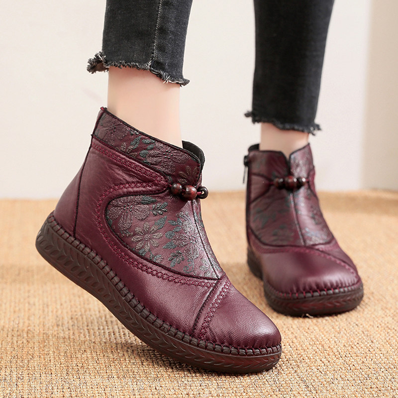 加绒保暖妈妈鞋 冬季 女棉鞋 老北京布鞋 软底软面圆头防滑女棉靴 新款
