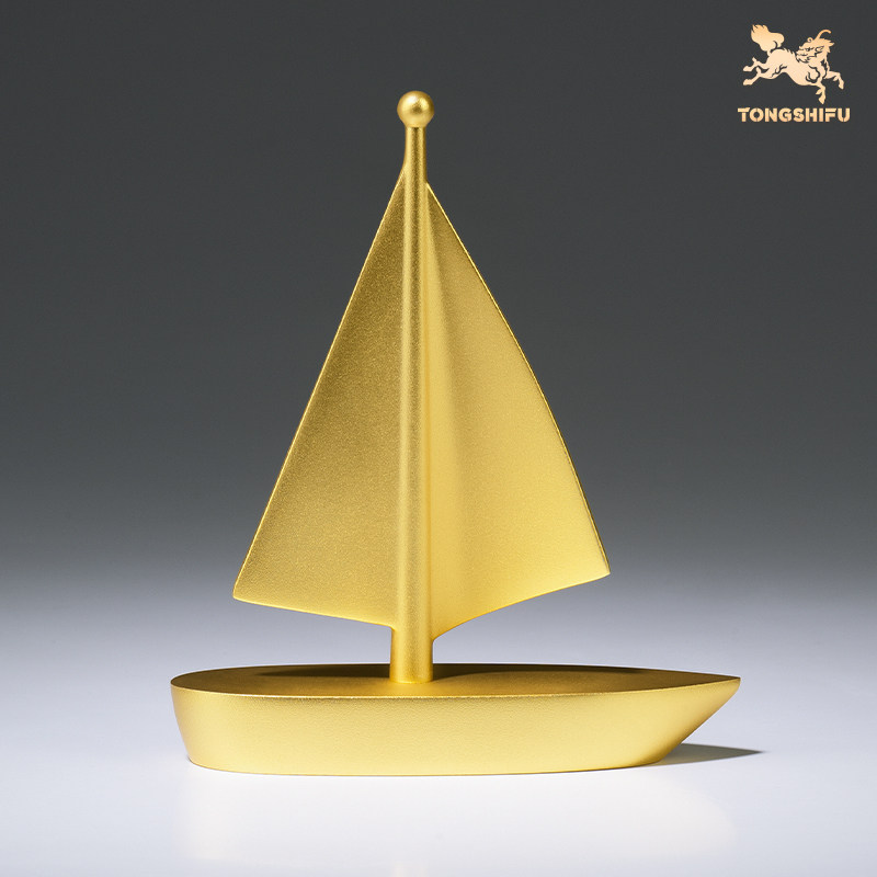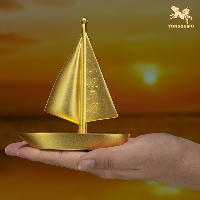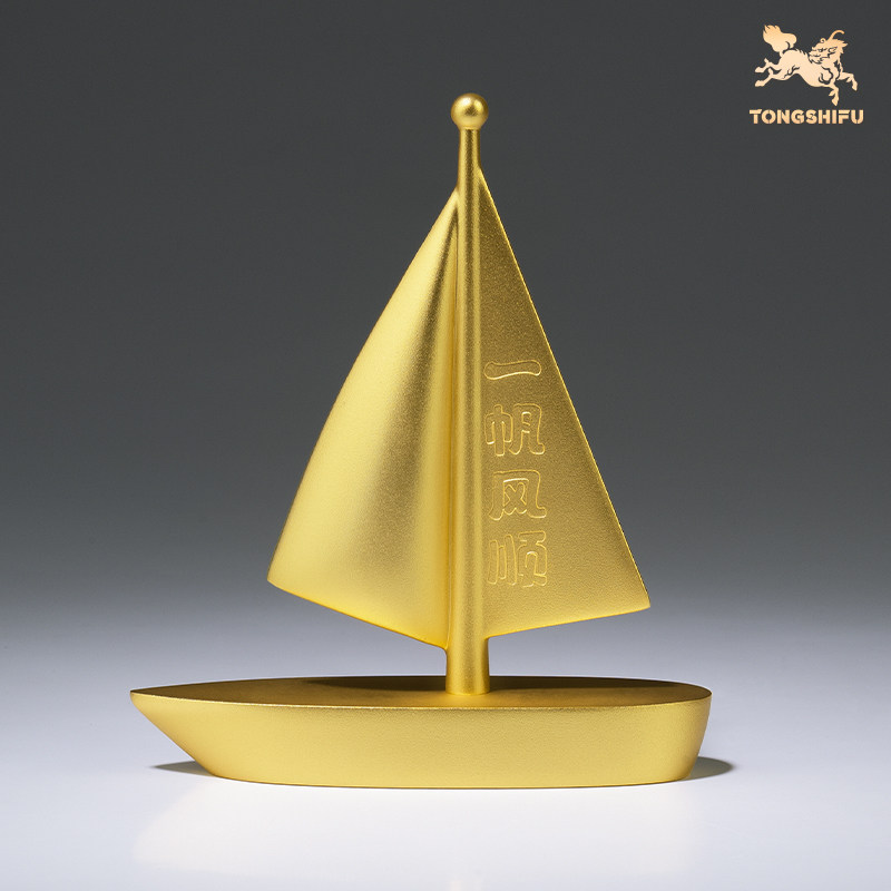 家居装 客厅桌面真金鎏镀铜船摆件 饰工艺品 一帆风顺 铜师傅