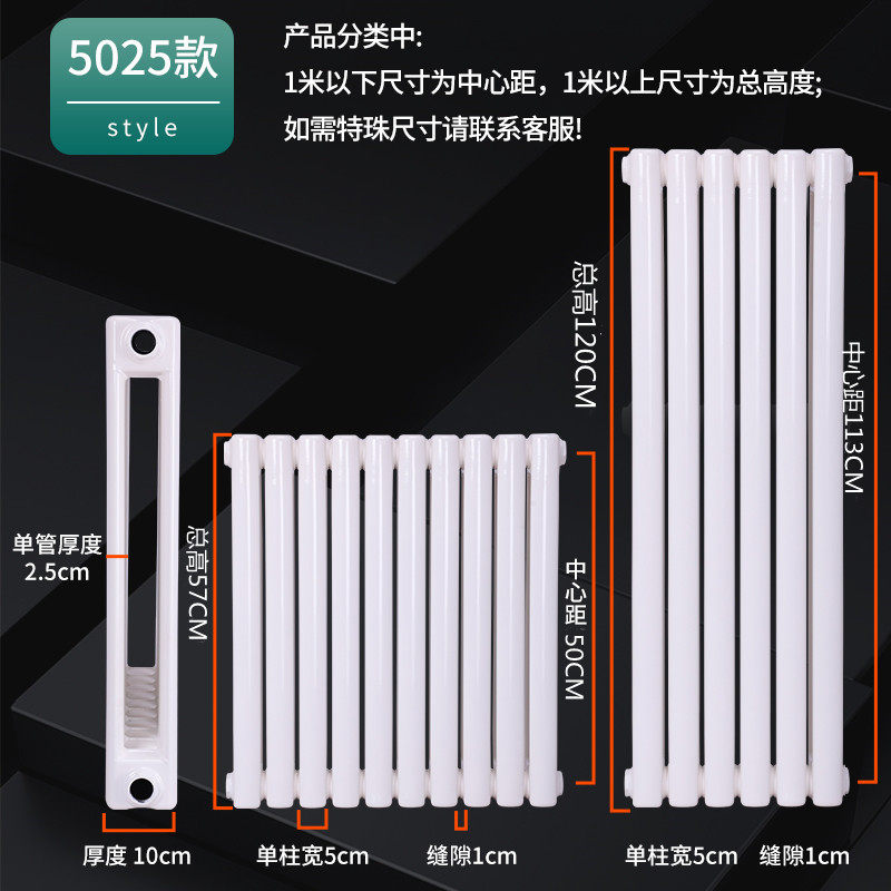 暖气片家用钢制水片钢二柱中50厘米壁挂式 工程片 集中供暖双柱立式