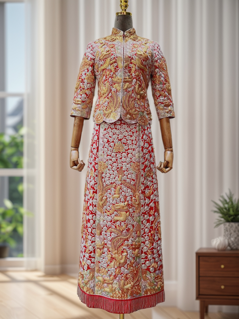 褂后皇龙凤褂出租手工中式 结婚新娘龙凤裙褂礼服秀禾婚服嫁衣租赁