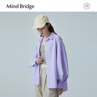 韩版 秋季 宽松显瘦休闲上衣 条纹衬衣设计感衬衫 MindBridge女士长袖
