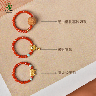 南红戒指女老山檀木扎基拉姆银龙饺绿松石小米珠对戒红玛瑙玉戒指