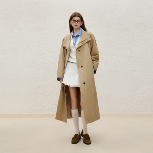 明星同款 新品 wana 风衣春季 气质外套 try极简立领老钱廓形长款