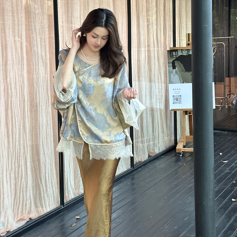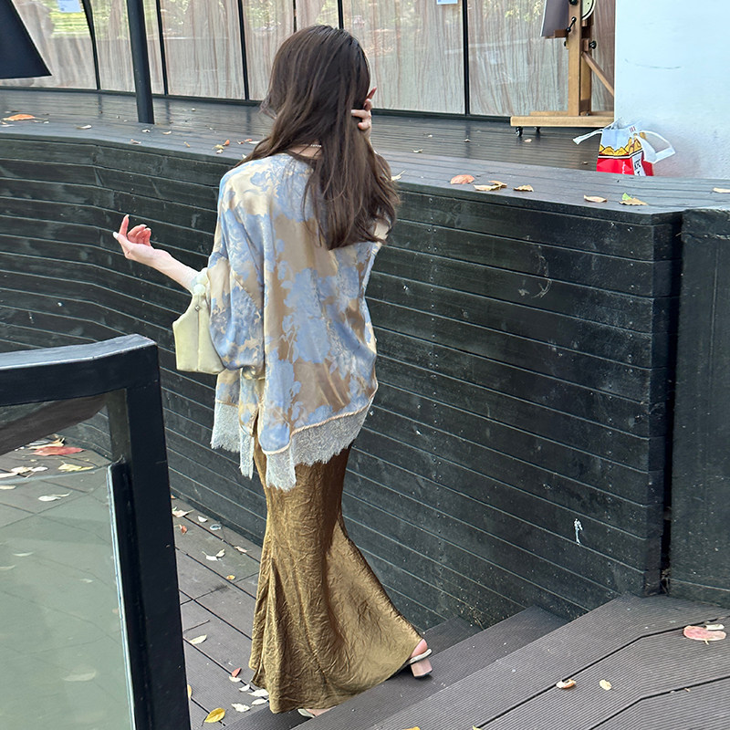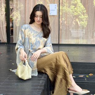 顾小落镜花瑶国风新中式 抓绉醋酸缎面鱼尾半裙垂感显瘦长裙 女装