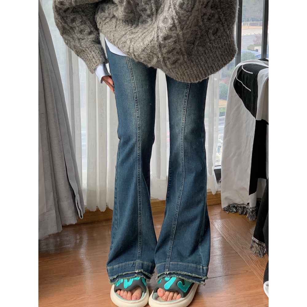 300斤特大码 子胖mm显瘦微喇裤 高腰弹力流苏喇叭牛仔裤 裤 女春季