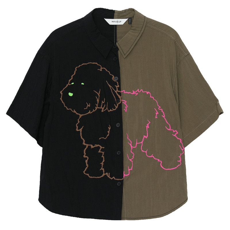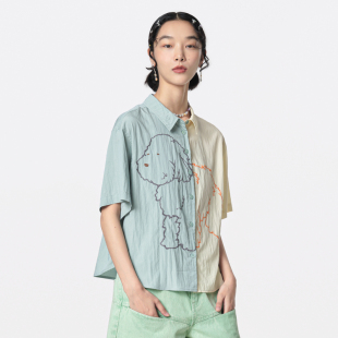 衬衫 衬衣休闲短袖 女上衣 撞色小狗绣花设计短款 MOVEUP幻走2025夏季