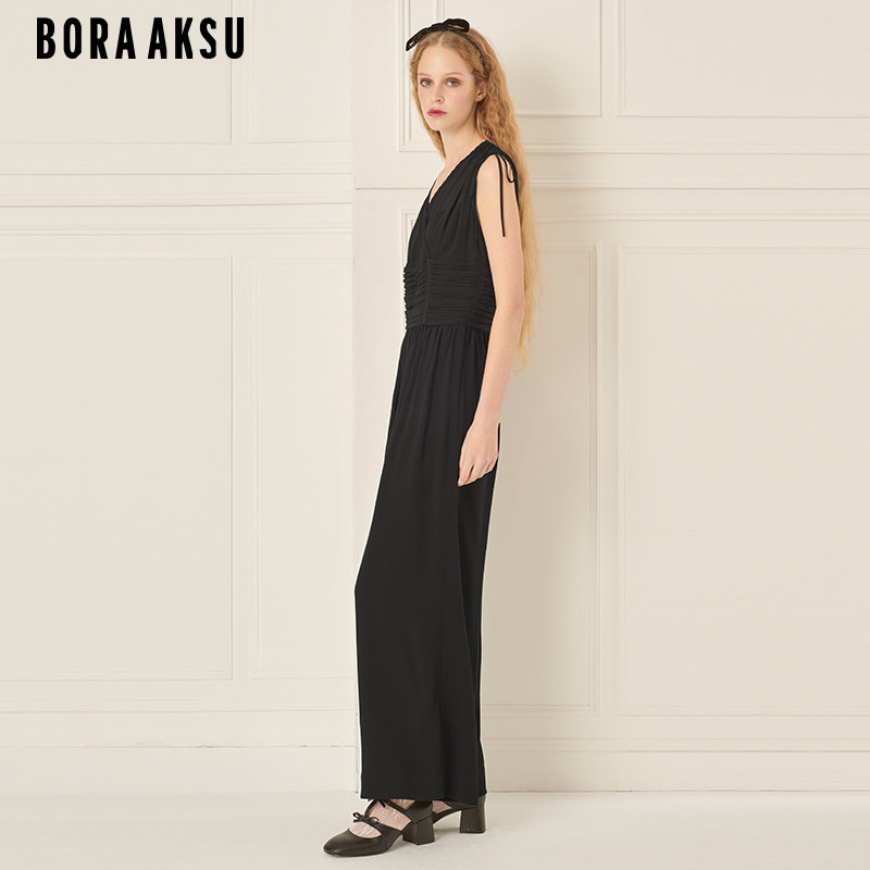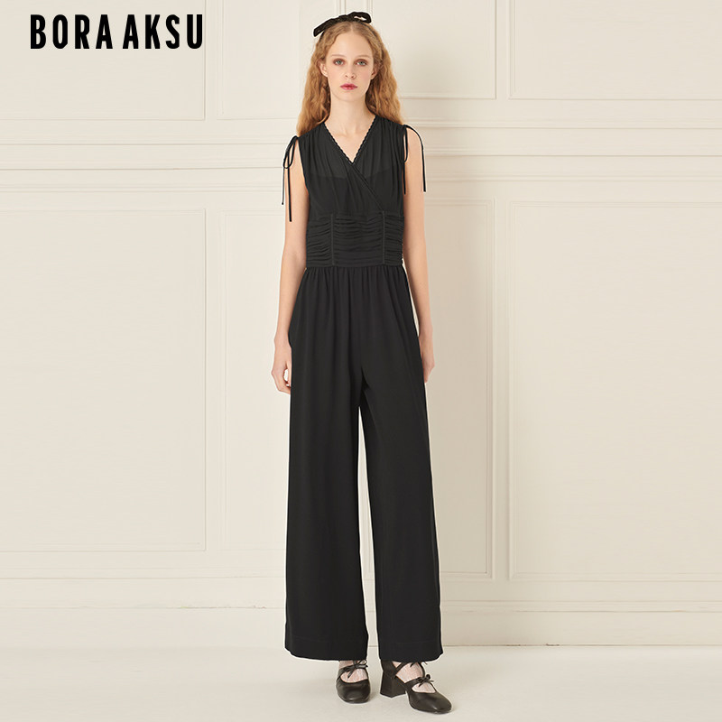BORAAKSU2024初夏新品 B1ECW57070 三醋酸气质交叠V领褶裥连体裤