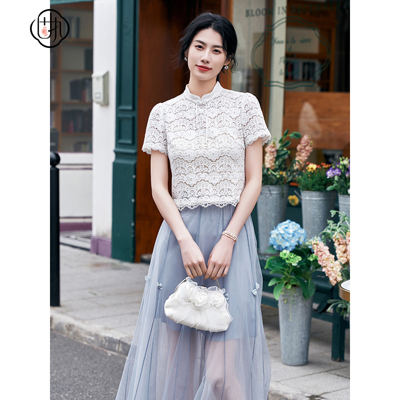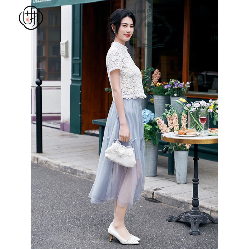 半身裙32842BQ09203 复古高腰蝴蝶结网纱中长款 固执夏季 新款