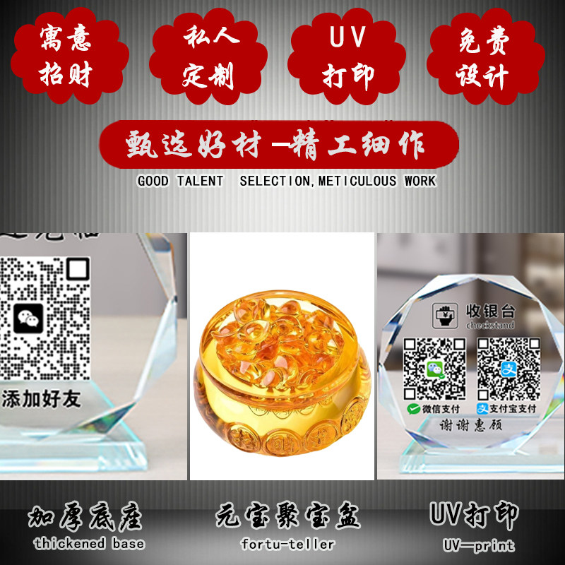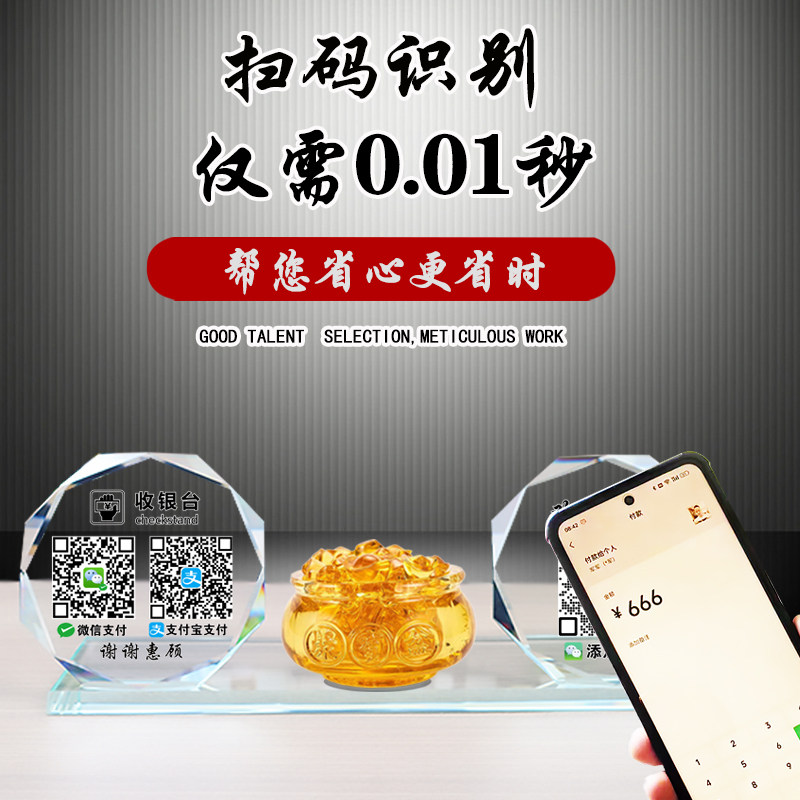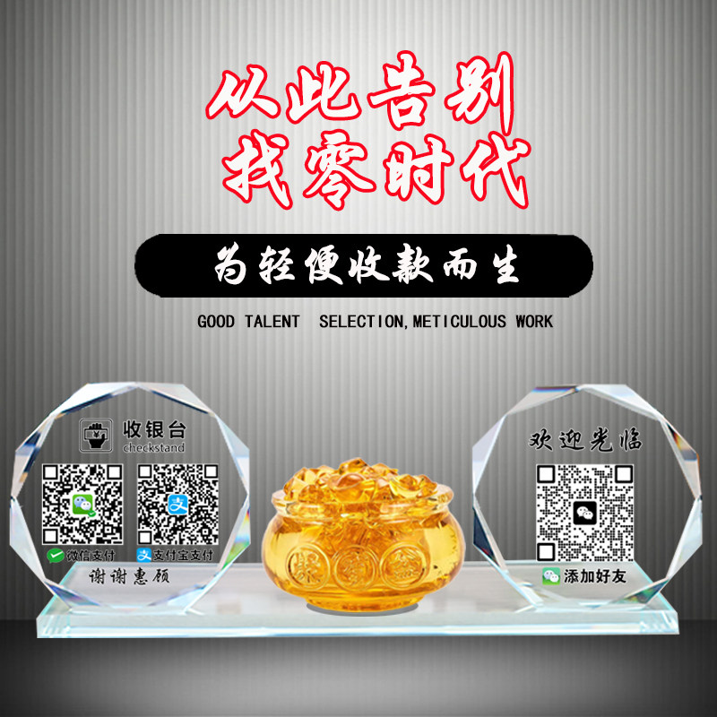 付款 水晶聚宝盆元 立牌制作收钱牌创意开店收钱扫码 支付牌定制语音播报微信支付宝银行扫码 收银台制作 宝二维码