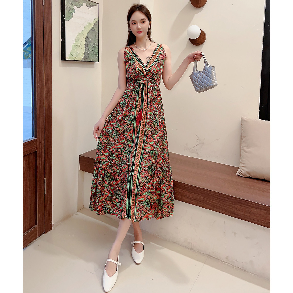 清仓泰国波西米亚挂脖民族风海岛度假旅游拍照沙滩裙吊带裙连衣裙