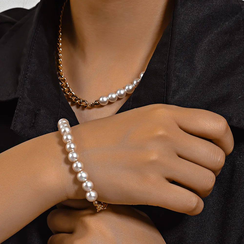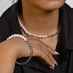 网红旅拍饰品 新潮高级感时尚 4件套桃心CCB十字链项链套装 欧美冬季
